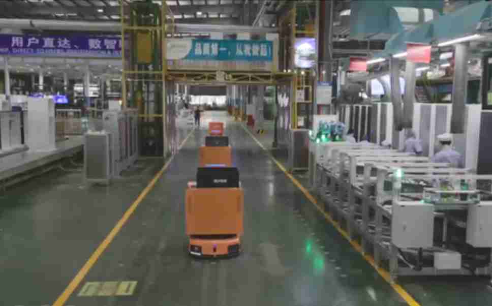 为车载冰箱物流配送打造的智能解决方案,,,,包含产中物流通过潜伏举升AMR搬运至线边,,,,产后成品物流智能仓储,,流程包含产中物流智能齐套入库,,,,线边安灯叫料AMR智能配送至线边,,成品入库、、、、出库,,,通过无人堆高车机器人,,,,智能仓储管理替代人工作业管理,,实现更高存储、、、、更高效率、、、更具柔性化的解决方案。。。。